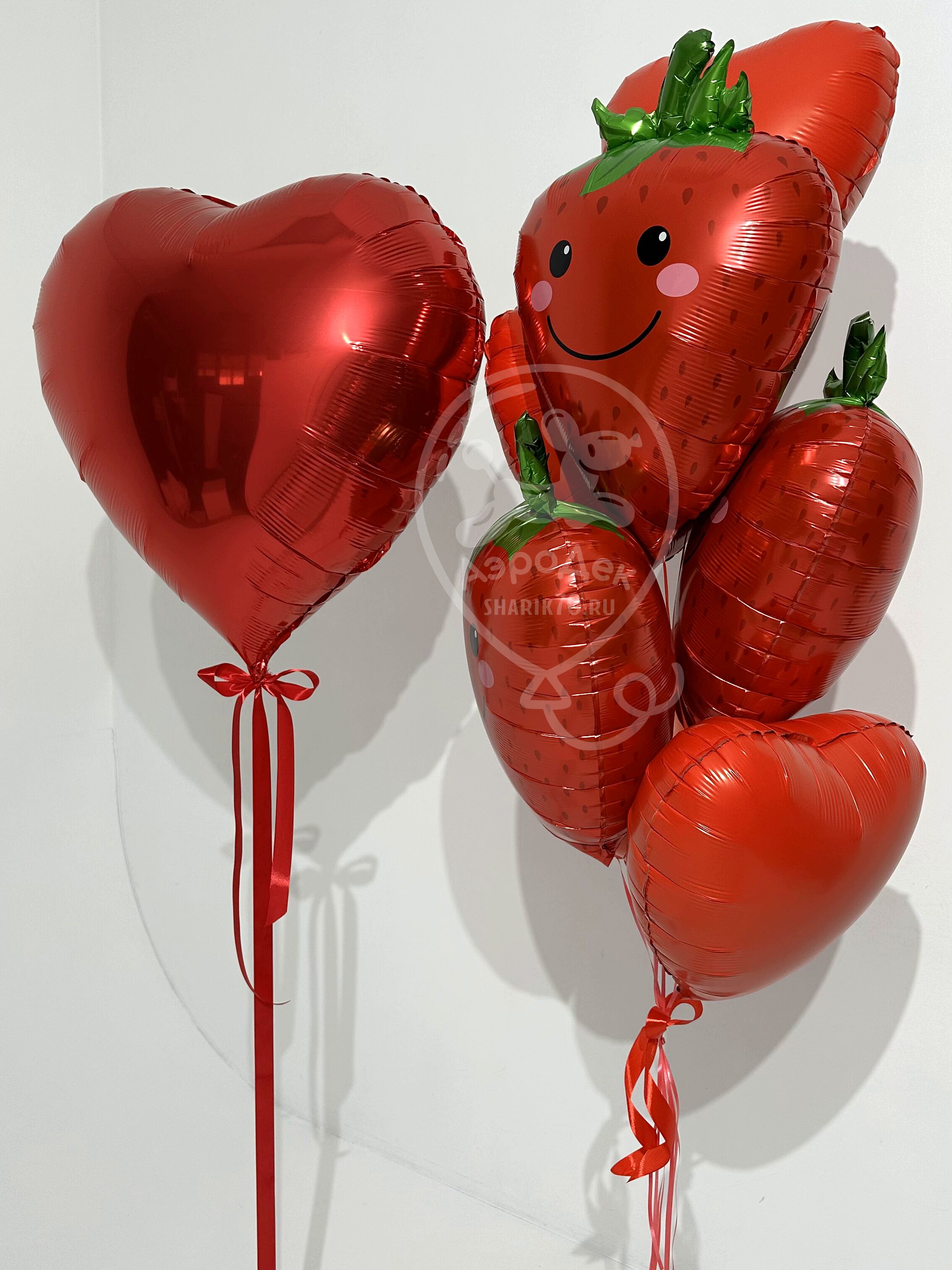 • 1 букет из 4 шара сердце 45см, 3 шара клубничка