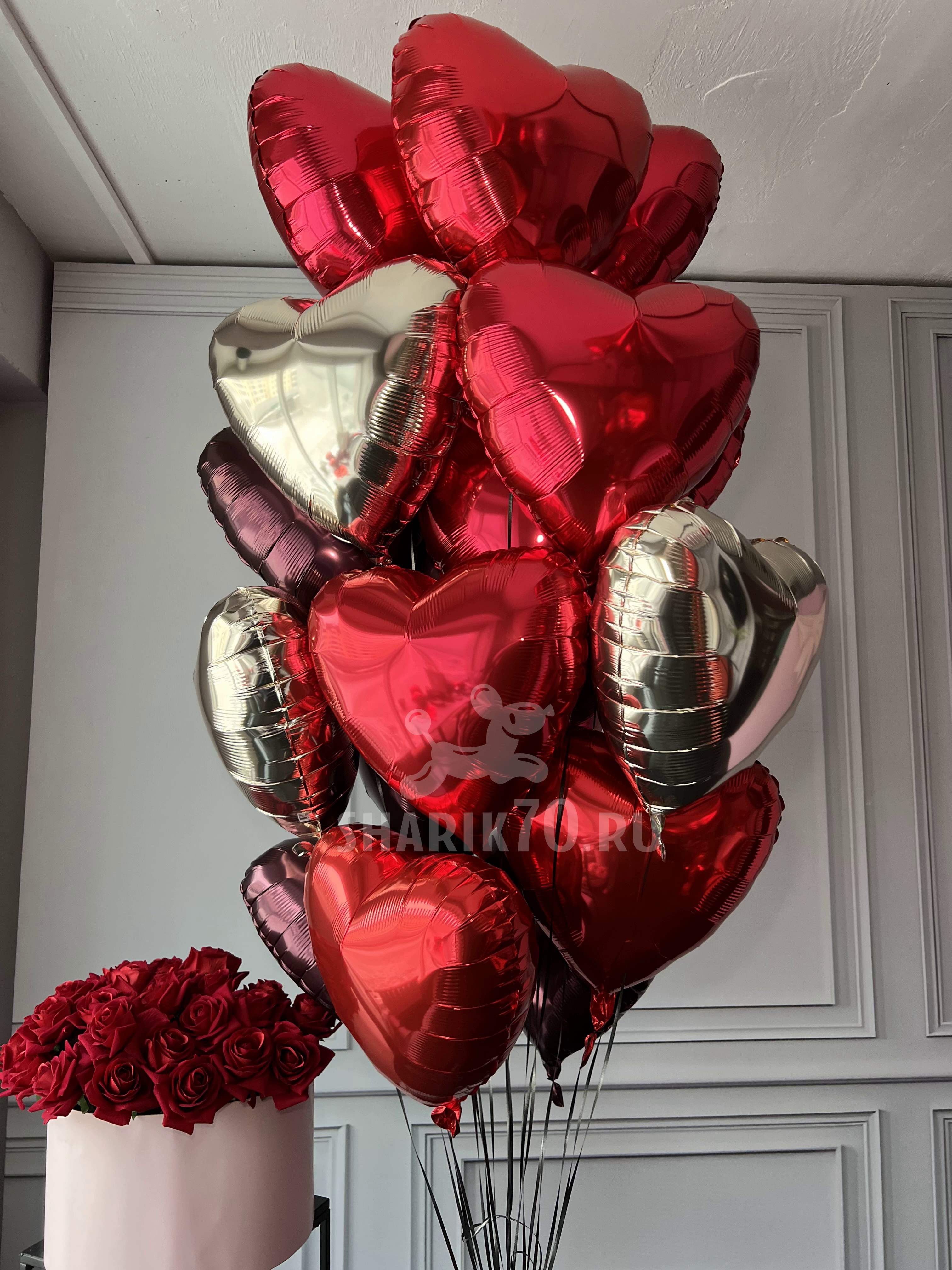 • 1 букет из 25 шаров сердце фольга 18" с гелием