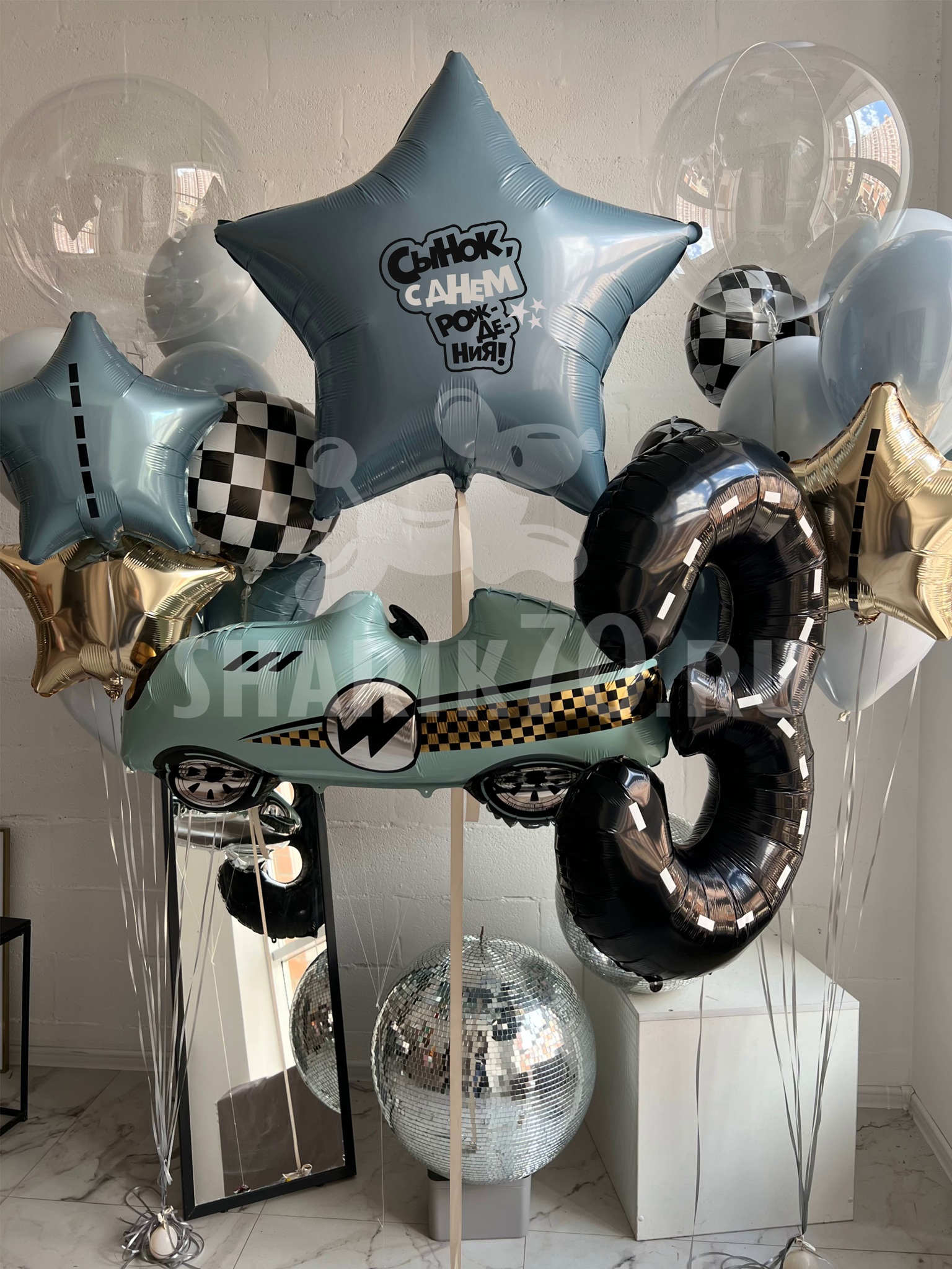 • 2 букета ( 1 шар бабблс, 2 звезды, 1 круг с рисунком, 5 круглых латексных шара)