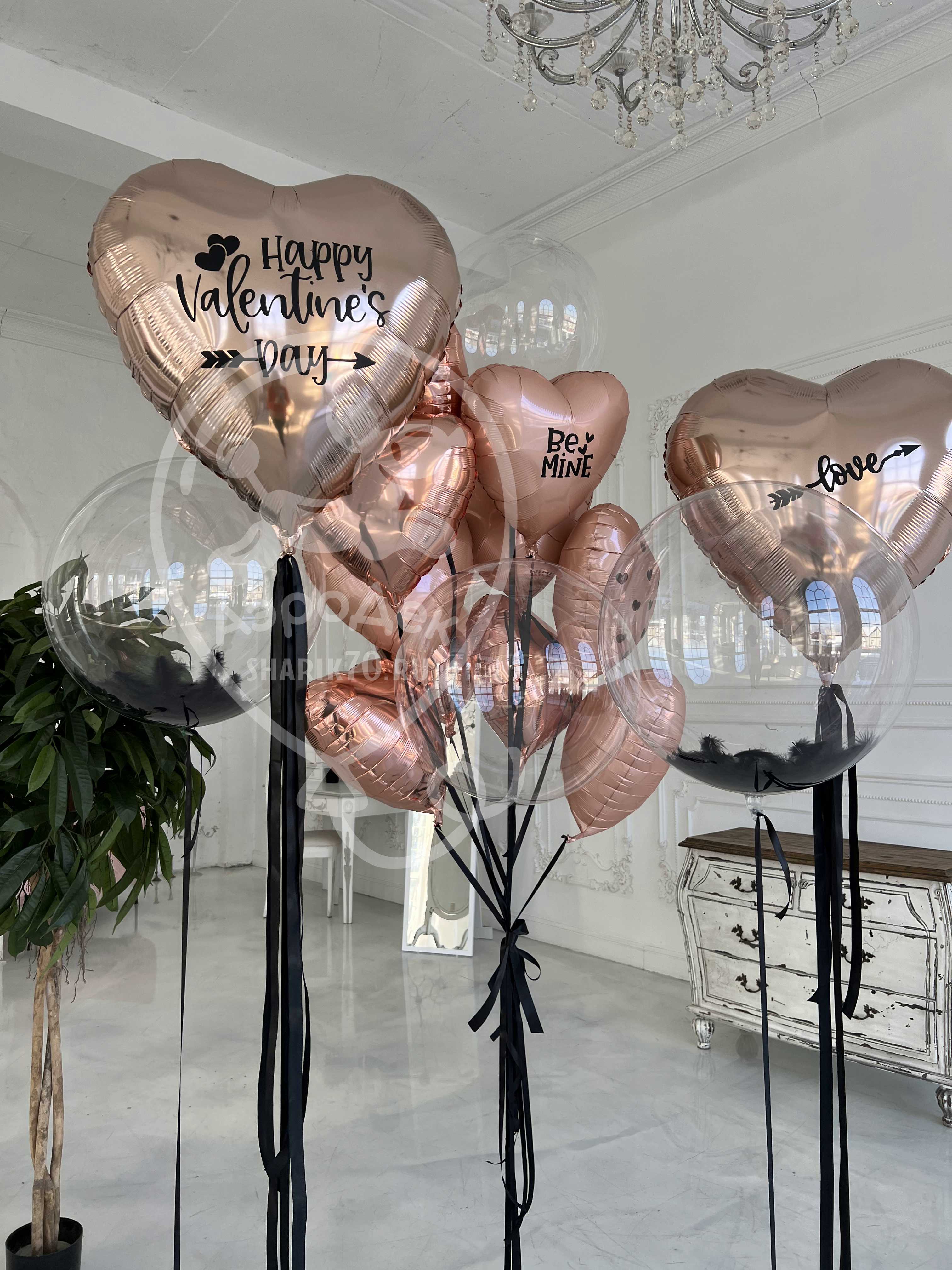 • 1 букет из 8 шаров сердце 45, 2 шара бабблс, 2 шара сердце 45см с рисунком