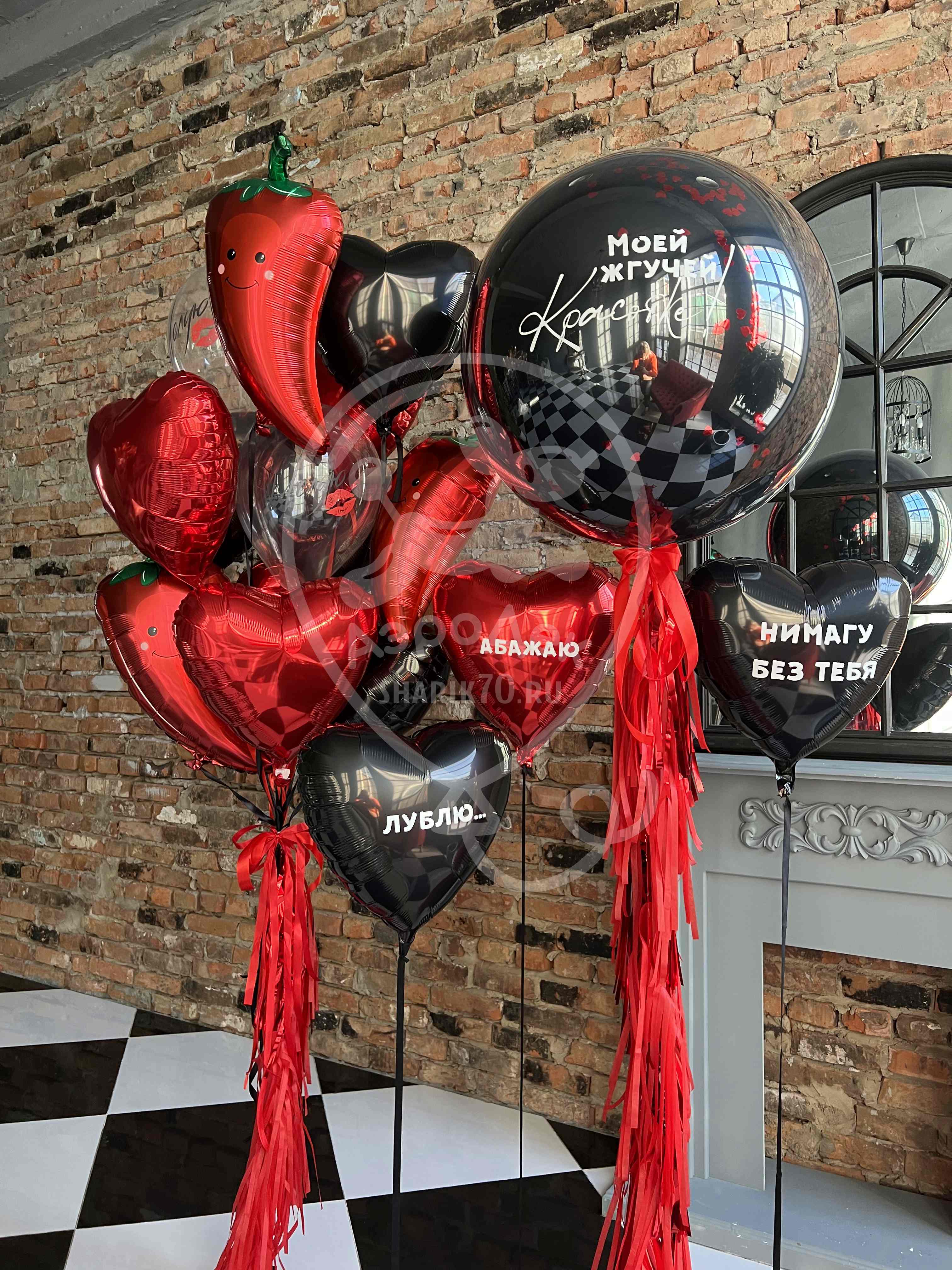 • 1 букет из 5 шаров сердце, 4 шара перчик
