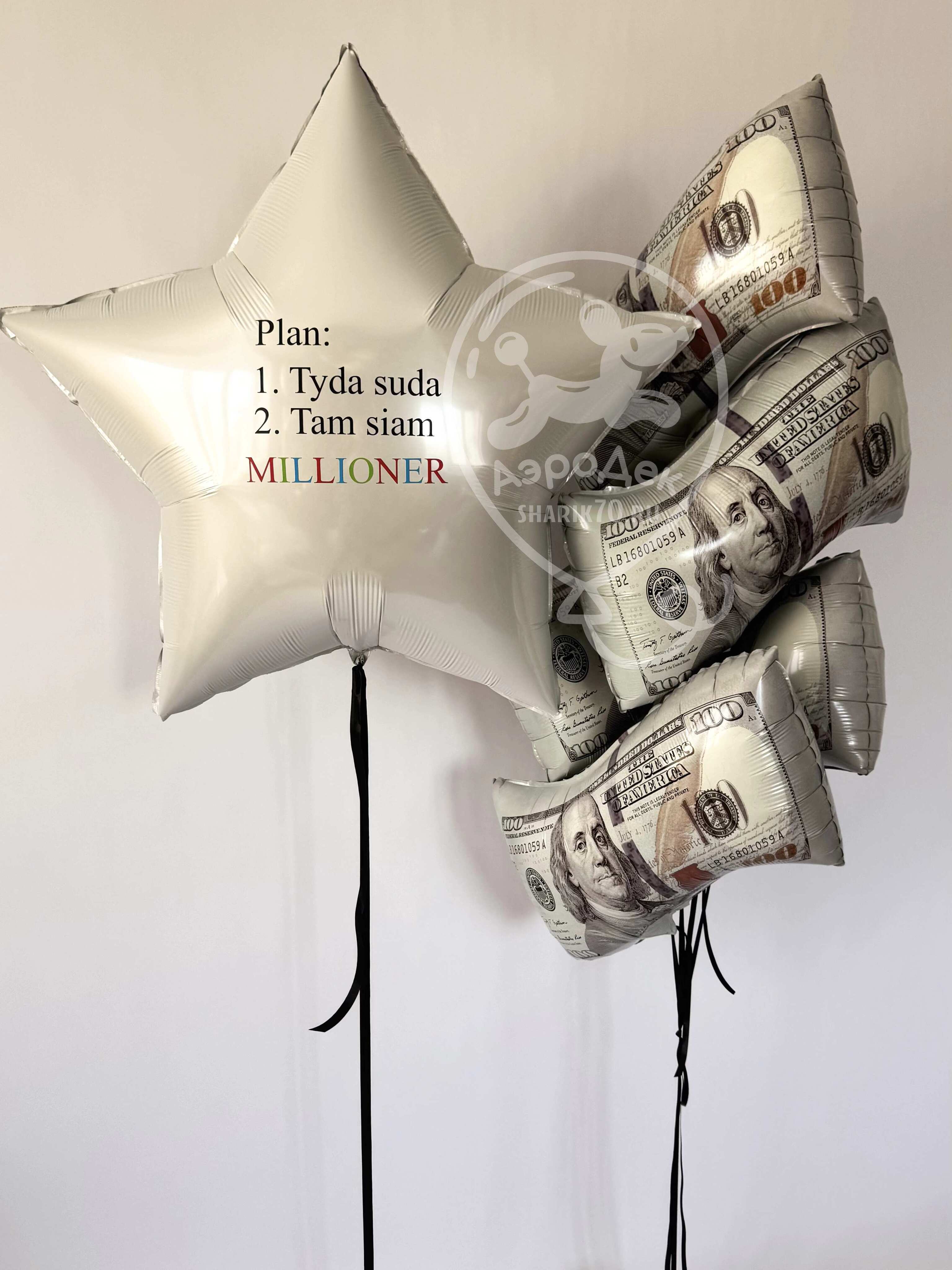 • букет из 5 шаров купюра доллар